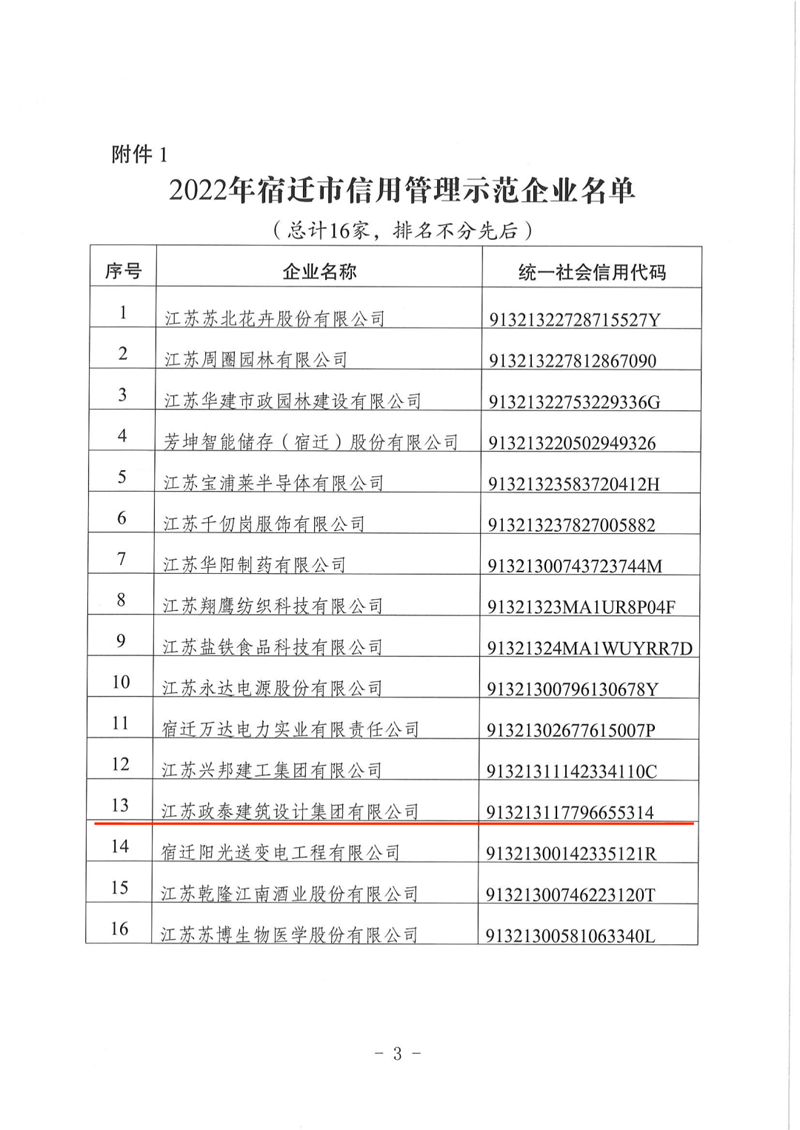 喜报丨政泰设计集团荣获“2022年宿迁市信用管理示范企业”称号、“2020—2021年度宿迁市守合同重信用企业”称号
